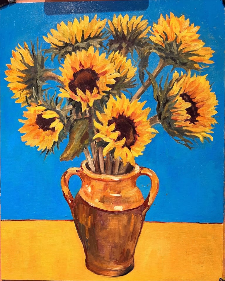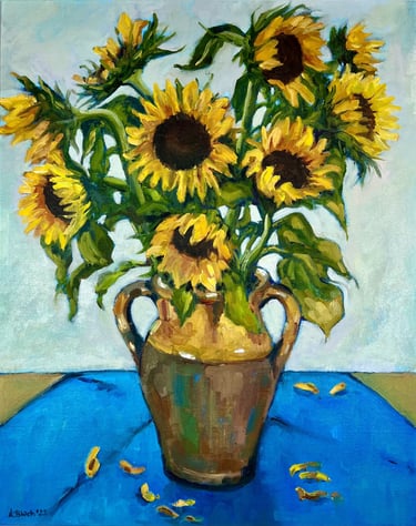 Sunflowers in Provencal Jar